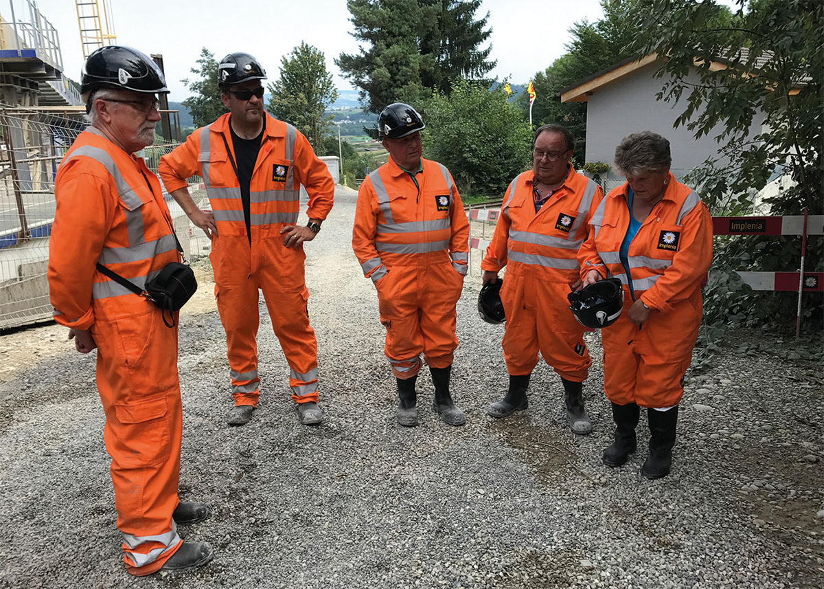 Nach den ersten Informationen im Besucherzentrum durften zuerst alle Teilnehmer einen orangen Schutz-Overall anziehen. Danach haben wir die Baustelle und den ersten Teil des neu erstellten Tunnels von innen besichtigt.